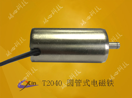 圓管式電磁鐵T2040 是電磁鐵廠家研發、設計的一款內置彈簧的推拉式電磁鐵,在不影響產品性能的前提下,把復位彈簧內置,有效的節省了電磁鐵整體尺寸,提升了客戶空間的使用