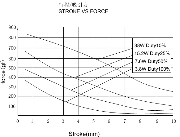 圖解:1,上圖描述的是推拉式門鎖電磁鐵的行程和力量曲線圖